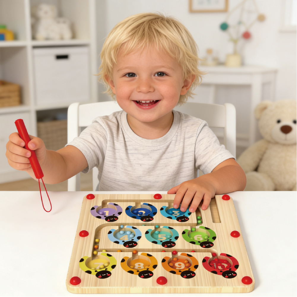 Children’s Wooden Early Education Toy Seven Star Ladybug Wooden Bead Maze Toy with Pen and Ball