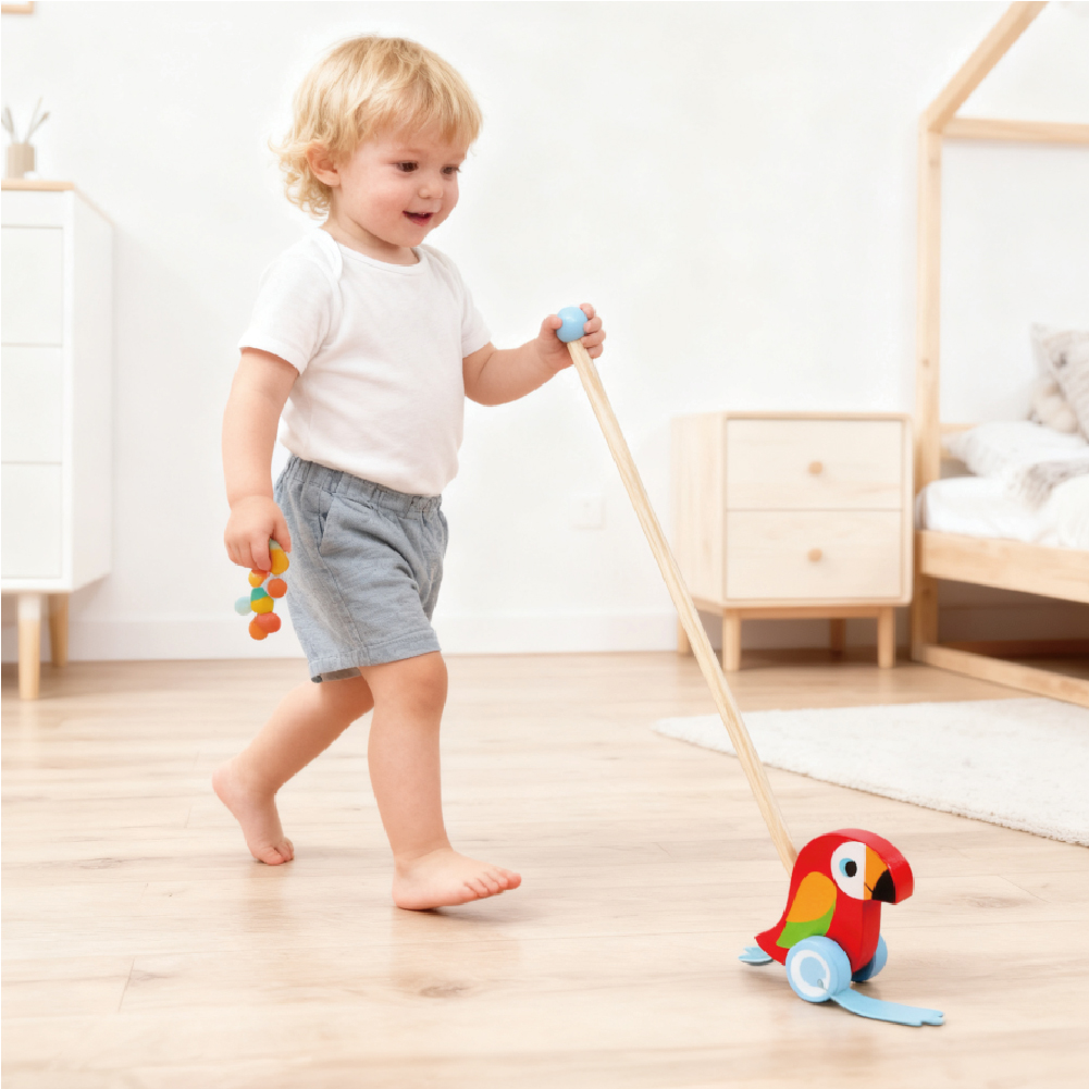 Wooden parrot push rod toys, children’s educational push and pull walking toys, develop motor skills